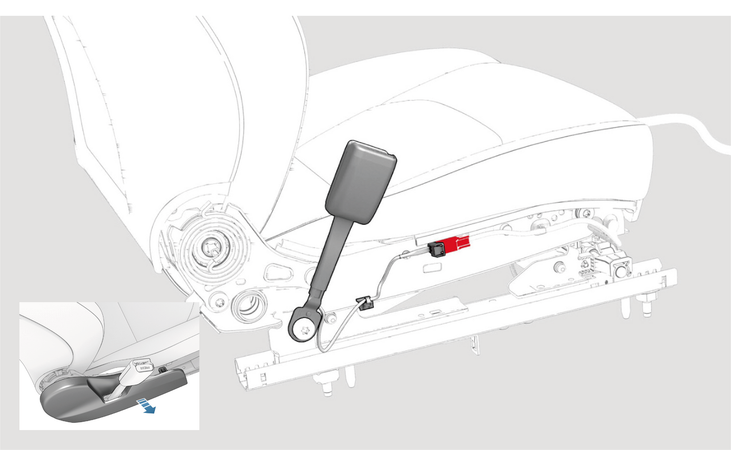 Mount the seatbelt buckle and pretensioner, removed in the previous step, on the bracket provided with the Sliderbase.
