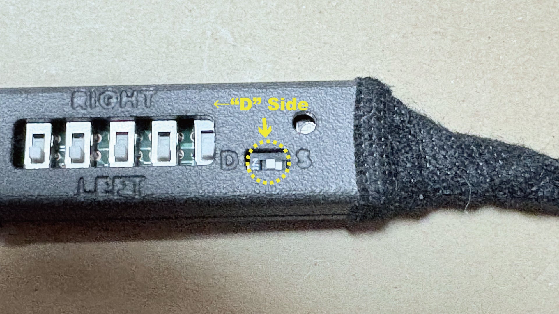 When using the right side seat, set all 5 DIP switches to the “RIGHT” side.