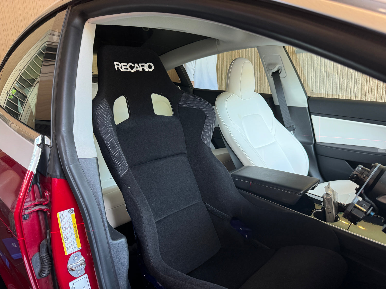 Remove the seat belt buckle from the seat, referring to the TESLA service manual.