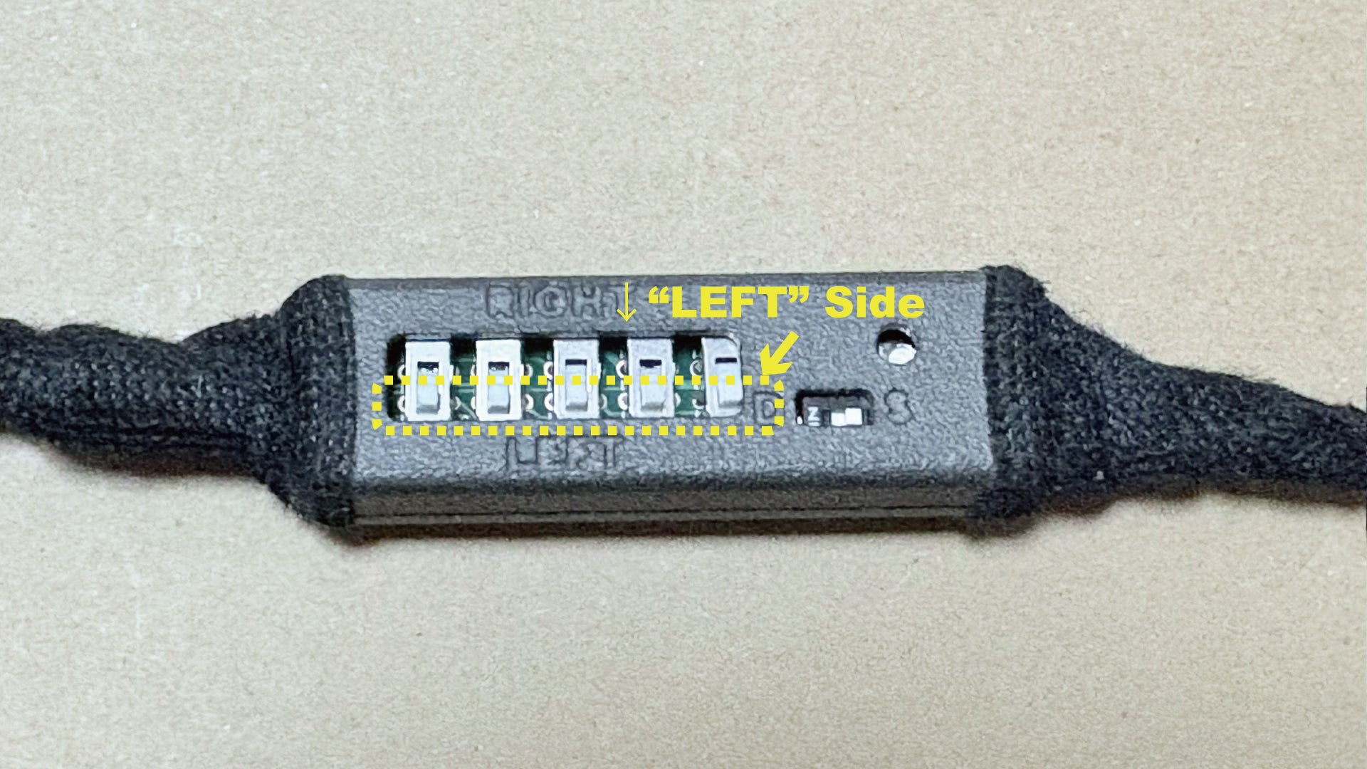 When using the left side seat, set all 5 DIP switches to the “LEFT” side.